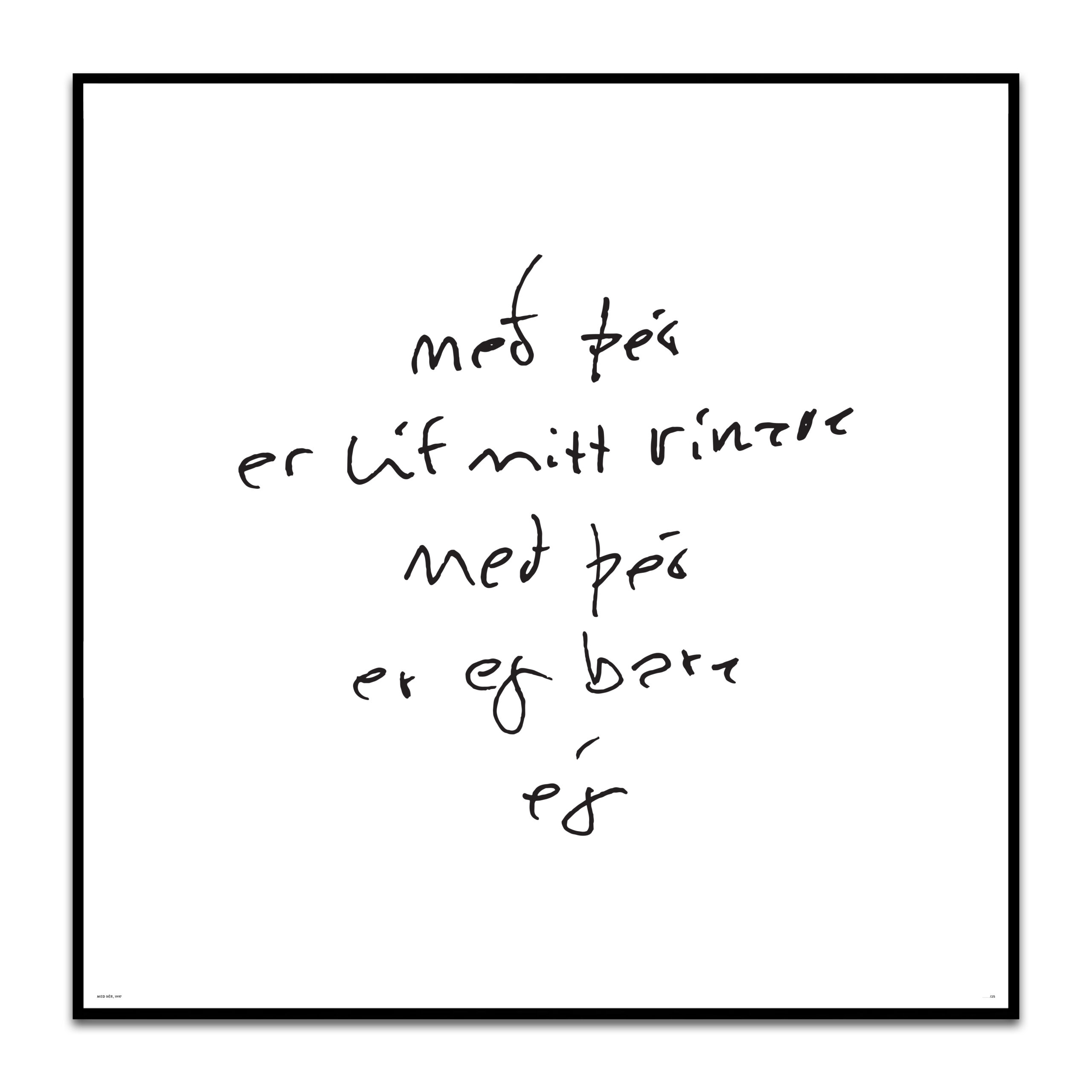 Textaverkið kemur innrammað í hágæða svarta álramma með  UV-vörðu glampafríu gleri.